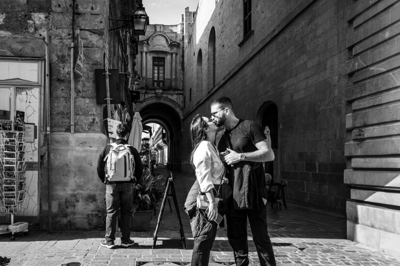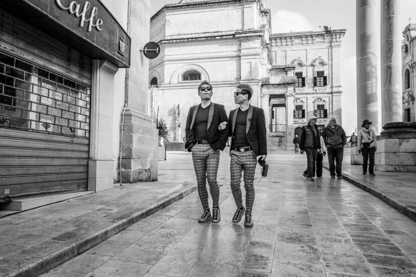 There, where I used to sit in a corner caffé once a year in July and watch the “Berlin Pride” parade go by; amazed at how relaxed heterosexual people can be, at least on a day of a year, when they march alongside gay, non-binary, transgender, … (or was my perception clouded again after the sixth, seventh, eighth coffee?). But what sticks in my memory is this young guy—or girl ?, acting a guy who’s acting a girl, even if only for a day? Finally exhausted from walking on high heels for miles.